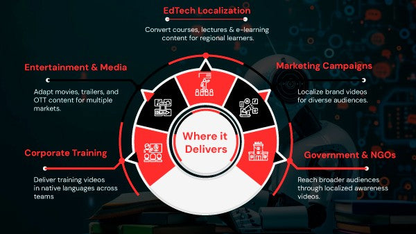 - Cost Efficiency – Eliminate expensive dubbing studio processes.